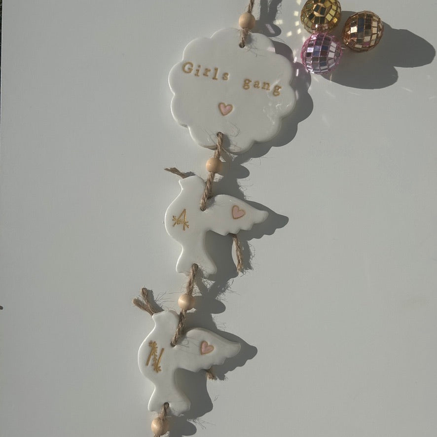 Cette guirlande "Gang" sera la décoration parfaite pour une chambre ou une salle de jeux ! Un cadeau destiné à unir tout en apportant " paix et amour " avec ses jolies colombes.